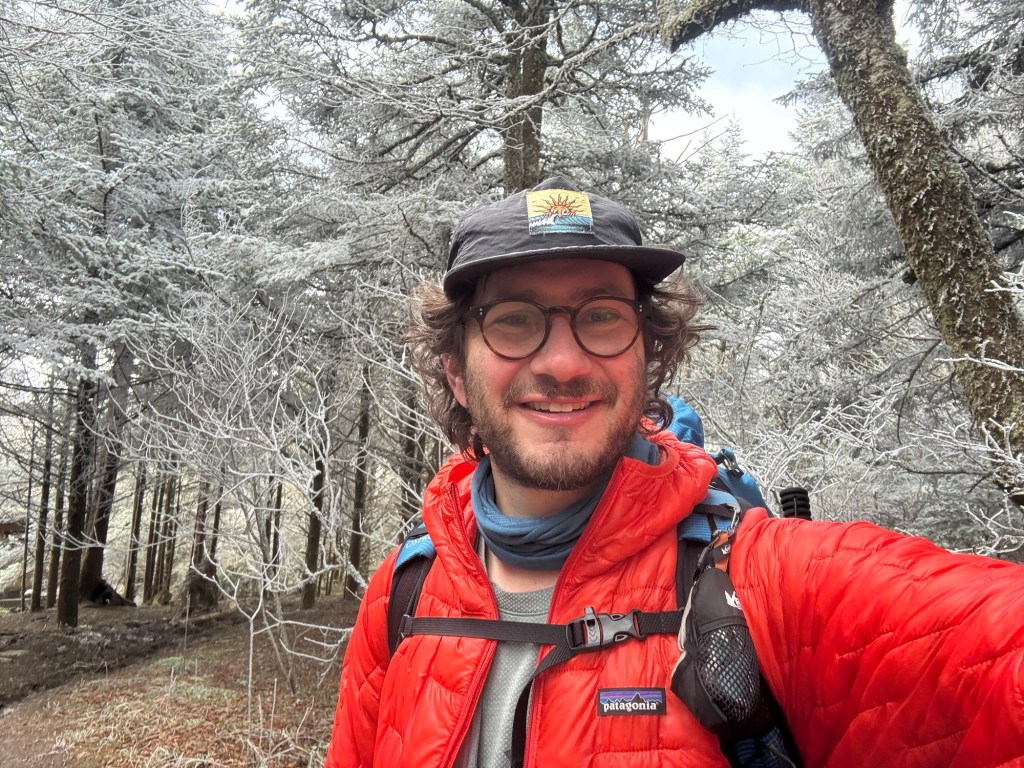 Even before the walk warmed us up, it was clear the day was going to be an absolute beauty. The trail was filled with snow covered trees as far as the eye could see. Branch after branch bent over the trail, weighed down by the frost. We walked through a winter wonderland, stopping frequently to take a photo, admire the view or just compliment the smokies.