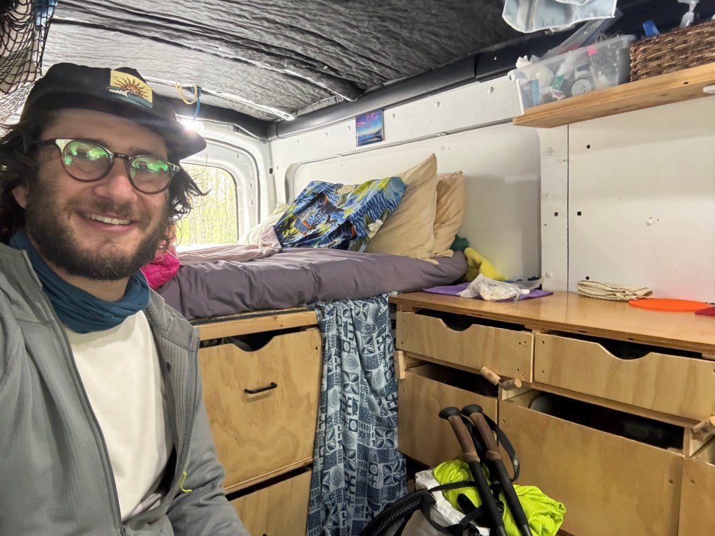 We had a ride within 30 minutes. A guy picked us up in his sprinter van. It was hard to understand his mumbles from my seat on the refrigerator in the back, but it sounded like his name was cookies and his girlfriend was currently thru hiking. He was helping her, and other hikers, out for the next bit before he drove out west to help out hikers on the pacific crest trail.