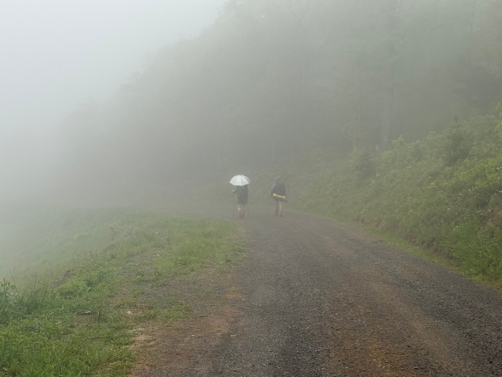 The next 2 miles of hiking were all uphill and, after sneaking another meal in at the gas station, were tougher than expected. But we strolled into camp, sopping wet, just before 4.