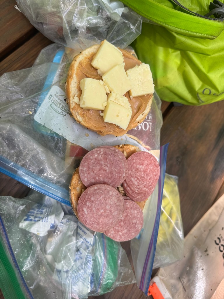 The day itself wasn’t too bad. The elevation wasn’t extreme. The temperature wasn’t cold. And the rain even slowed to a drizzle for most of the day. I stopped for a noon lunch at a shelter with rocket and by the time we rolled in, there was a break in the rain long enough for the sun to come out. I took off my shoes, socks and shirt and hung them to dry – knowing it wouldn’t help but figuring I had to at least pretend to try.