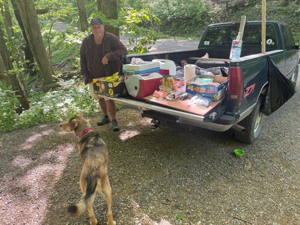 I sat with easy boy and Molly and chatted with Easy Boy (person) while Molly (dog) whined every time I stopped petting her. Easy boy is a West Virginian who drove over an hour to get here and give out free food. He had been a bit disappointed by the trickle of people coming in, but was still having fun. As I left I made my resolution, I’m going to start asking people why they do trail magic. I really appreciate it obviously. But what makes someone drive an hour to hand out oranges to smelly people?