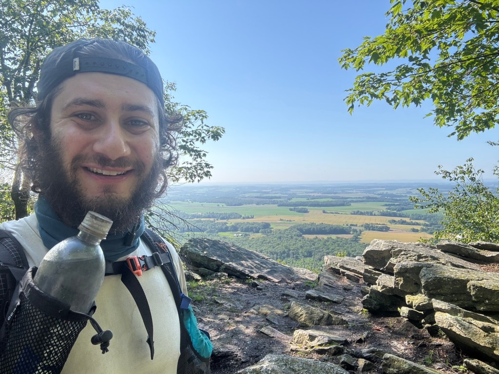 I passed through the last boulder field of the day and came out on top of an exposed ridge line. It was gorgeous, but with no trees, there was no shade. And it was immediately hot. The sun beat down on me as I walked, looking down on the Lehigh valley below me.