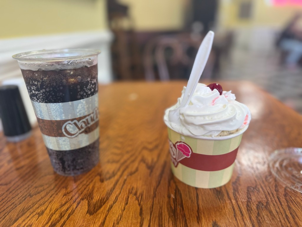 I got a ride within a minute or two. After we chatted about the trail for a minute, he asked where in town I wanted to be dropped off. I shrugged but then I saw an ice cream store. “There.” I said. “I want to go to there.”