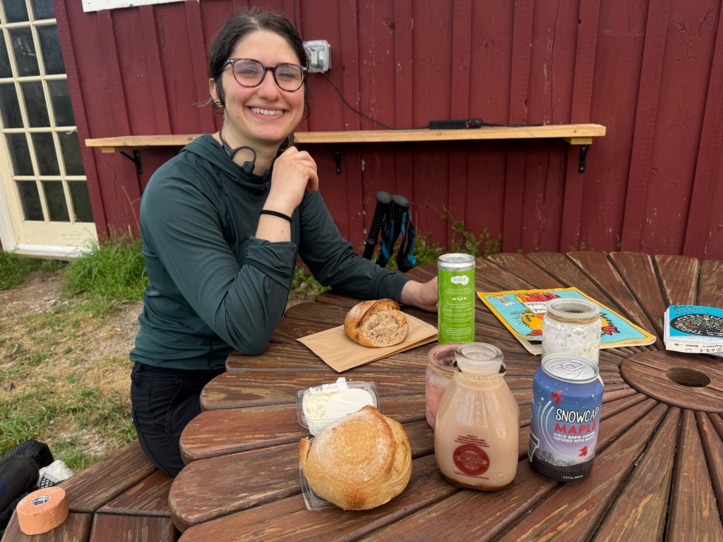 It was still wet in the morning when our alarms went off at 5:45. We decided to that if we were going to get up and over killington today, we shouldn’t feel the need to rush and we’d give ourselves plenty of time. We were about to eat a quick oatmeal breakfast when I saw there was a farmstead 3 miles ahead. We agreed it’d be best to eat a power bar and see what they had for us there.
