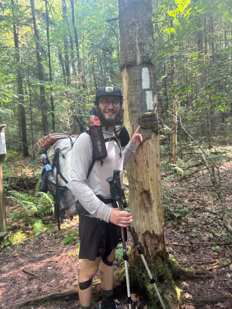 It wasn’t an easy climb but it wasn’t steep. It was just never ending. But then the monotony broke when we saw first the sign that said 500 miles to Katahdin and then the sign that said I’d walked 1700 miles. I was filled with joy at both of these. There’s still so much to go (still a full Camino!) but it is really starting to feel like I’m in the home stretch. For the first time, I realized that if I could walk 500 miles, then I wouldn’t have to walk any more. I was excited.