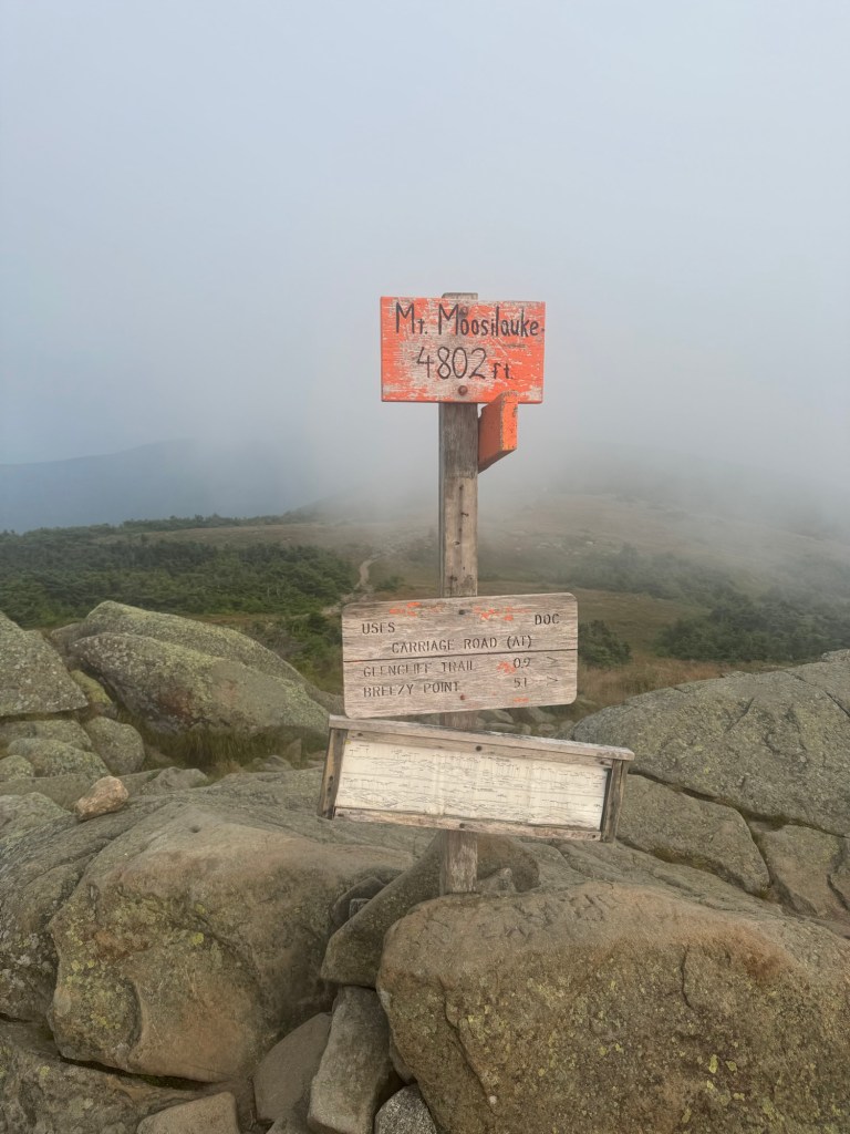 When I finally made it to the top, it was eerie. The tree line on the white mountains is pretty low, somewhere around 4000 or 4500 ft due to the weather being so terrible. What that means is that on top of the mountain, and as you get toward the top, the sounds of song birds stops and an absolute silence takes over. If you stop moving, there are no sounds. It’s just quiet.