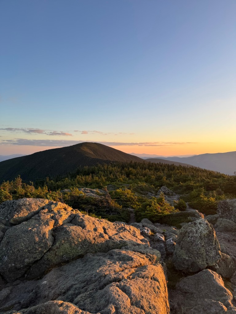 Exhausted, I found a beautiful campsite by myself at the top of Mount Hight. I’m a 0.1 mile walk from the summit which again provides 360 degree views. I ate dinner up there and stayed to watch the sun set over mount Washington. There are times where it hits you that this whole AT thing is pretty cool. And sitting atop of your own personal mountain, watching the sun set is definitely one of those times!